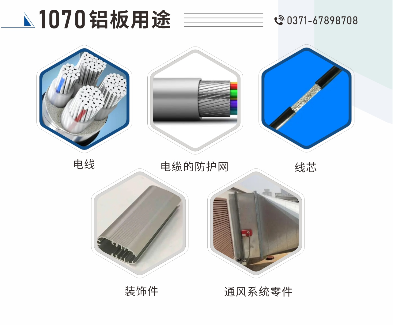 散熱器、充電樁、防腐保溫、電線、電纜的防護網、鋁母線、電子產品、氧化料等 |